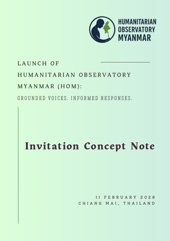 The Humanitarian Observatory Myanmar (HOM) will be officially launched on 11 February 2026 in Chiang Mai, Thailand. HOM is an independent, non-operational research initiative that documents and analyzes humanitarian systems in Myanmar, amplifying community-based evidence and the perspectives of affected populations. The launch event will bring together humanitarian practitioners, researchers, civil society, and policy actors to share HOM’s vision, highlight the importance of locally led humanitarian action, and foster informed dialogue on humanitarian governance in Myanmar and beyond.