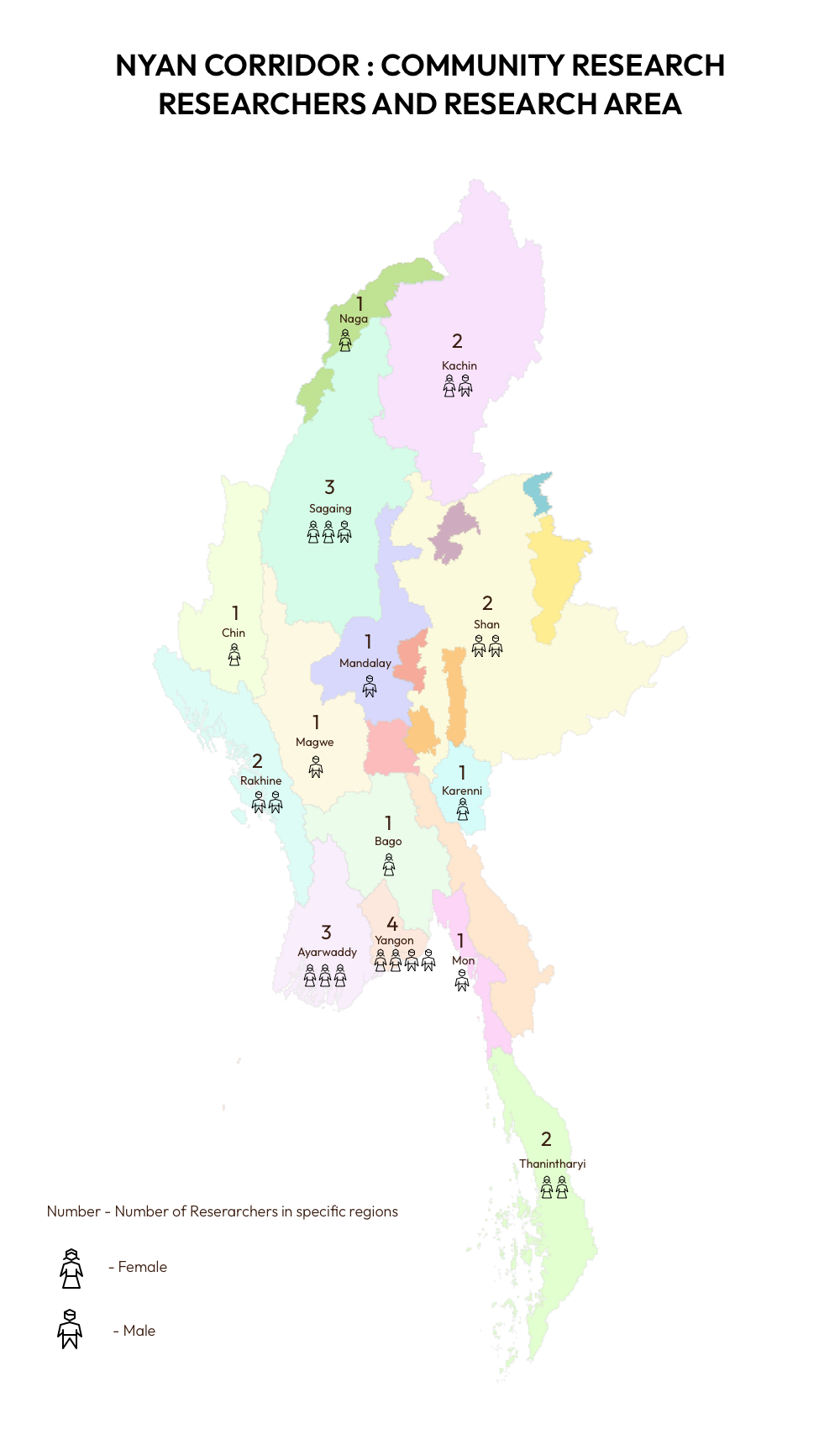 Nyan Corridor seeks to contribute to the realization of a just society in Myanmar by building inclusive knowledge through rigorous research and the dissemination of research-based insights. Your collaboration is vital to the development and implementation of locally initiated, contextually grounded, and timely research and training initiatives. At a time of significant contraction in international aid, individual contributions are more crucial than ever in sustaining this work.